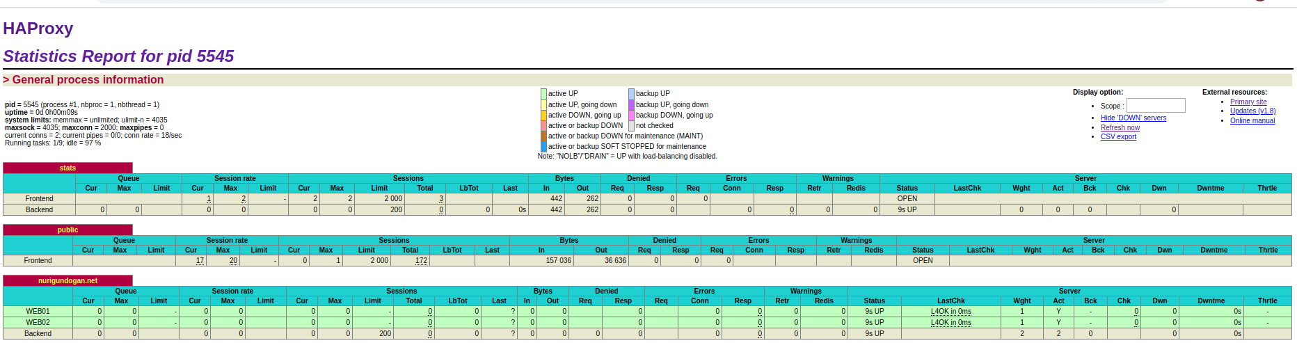 Konfigürasyonların aktif olması için aşağıdaki komut ile haproxy servisini reload ediyoruz. Ve artık load balancer’ımız hazır hale geliyor.